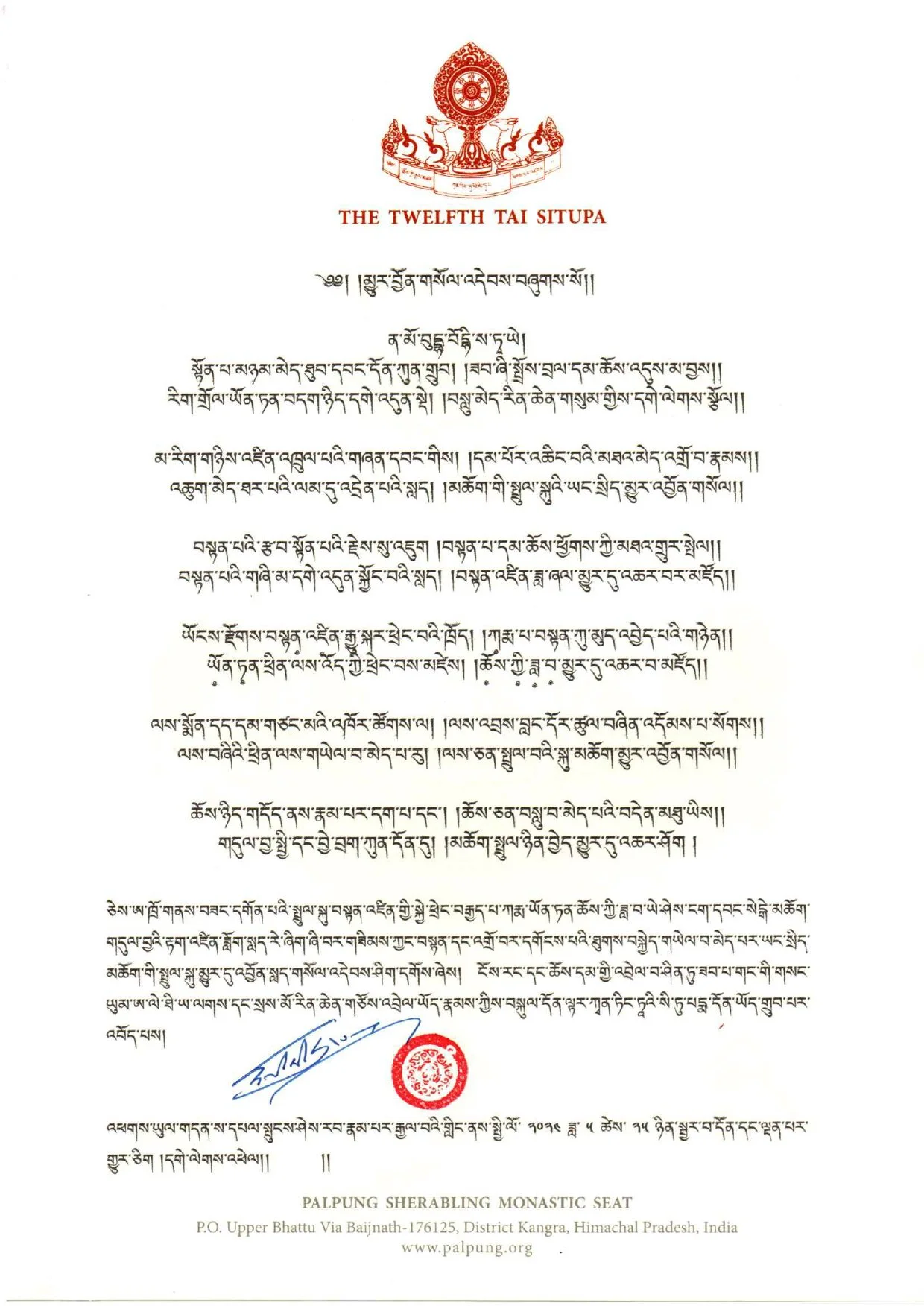 Supplication for the swift return, written by his eminence Tai Situpa